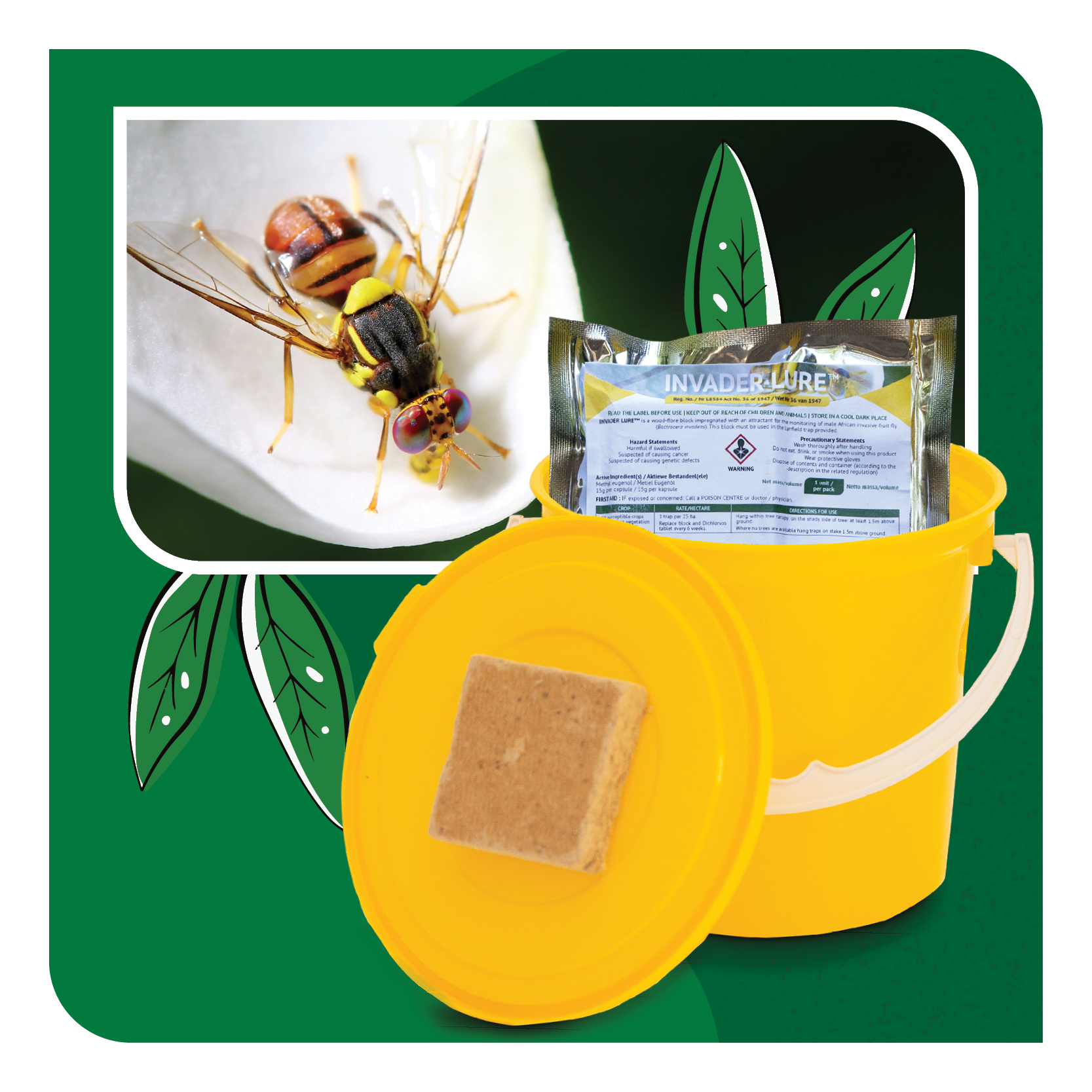 Invader Lure only serves as an attractant in the Lynfield trap and this monitoring system uses dichlorvos tablets to kill the attracted pest. Invader-b-lok is a pest control product and does not form part of a monitoring system. It contains malathion, which kills the target organism on contact.